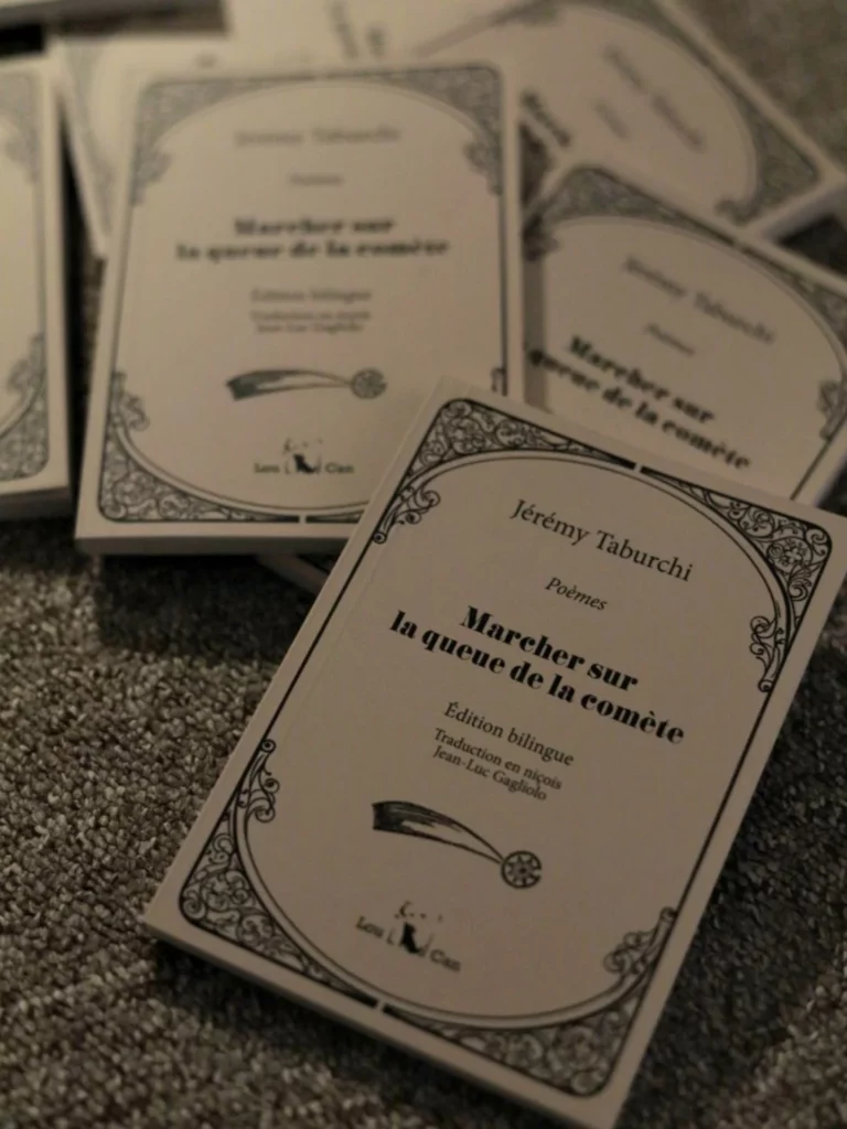 Quelques exemplaires de la seconde édition de mon livre « Marcher sur la queue de la comète », éditée chez Lou Can éditions. Les amateurs de poésie et de langue niçoise peuvent maintenant se procurer le livre en cliquant sur le lien ci-dessous :
